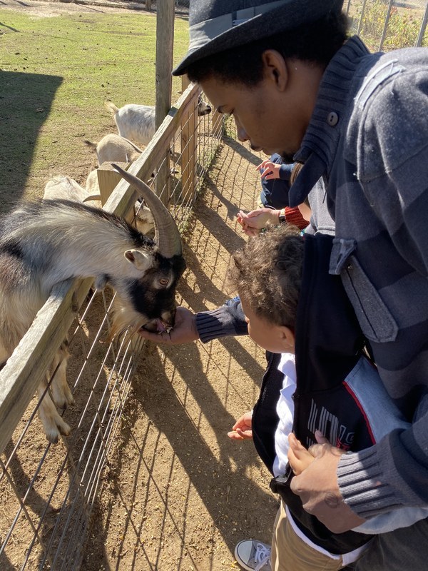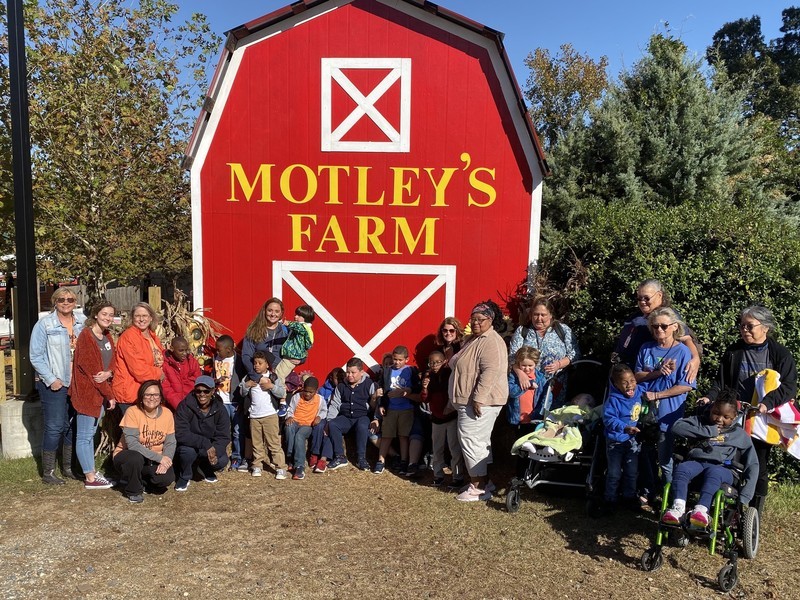 This group has been learning about pumpkins and farms the past month. They went on a hayride all throughout the patch and even got to see some of the Christmas trees that are growing. They walked through a petting zoo and the students got to feed the goats.
